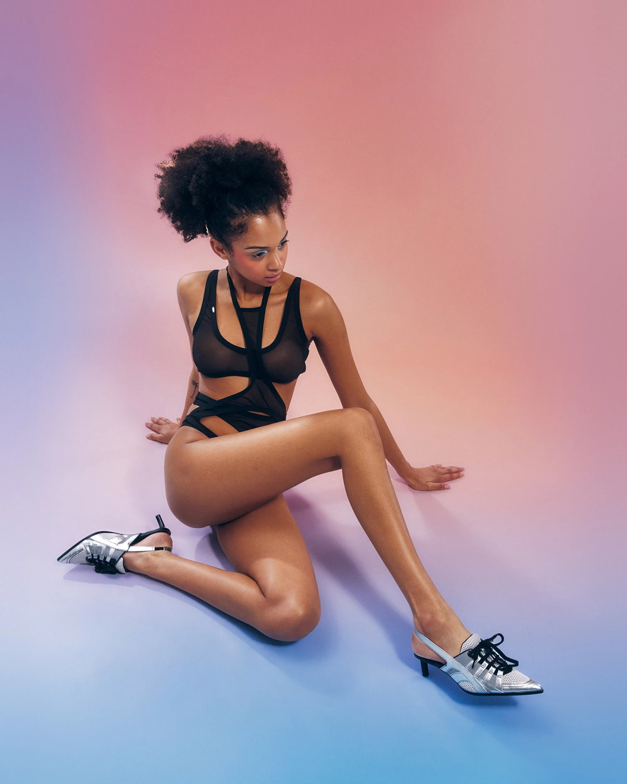 Czarne body z transparentnego materiału podkreśla naturalne linie ciała. Elastyczny mesh dopasowuje się do sylwetki, a geometryczne cięcia i lamówki tworzą wyrazisty efekt. Regulowane ramiączka, trójstopniowe zapięcie na plecach i pasek na szyi pozwalają idealnie dopasować model do figury. Odsłonięte plecy i wycięcia po bokach dodają całości lekkości i charakteru. Poczujesz w nim totalną pewność siebie w każdej sytuacji. Idealny wybór dla kobiet, które lubią, gdy ich styl przyciąga spojrzenia.